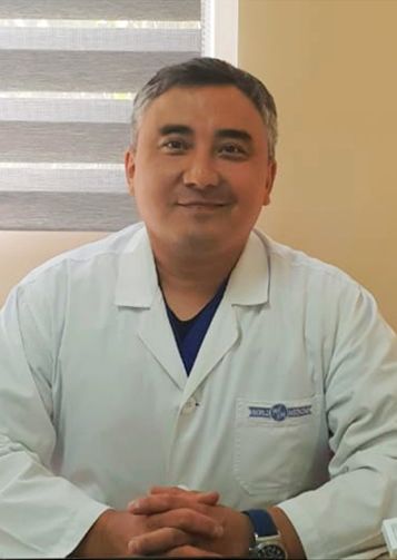 имеет 1 квалификационную категорию по гинекологии. Окончил Западно-Казахстанскую государственную медицинскую академию им М. Оспанова, клиническую ординатуру по специальности детская хирургия. Имеет первичные специализации по специальности хирургия и акушерство и гинекология. В течение 13 лет работал в детской и взрослой хирургии в государственных и частных клиниках, с 2011 г являлся заведующим отделения эндоскопической и реконструктивной гинекологии Областного перинатального центра г. Актау. В 2012 прошел стажировку в международном центре эндоскопической хирургии г. Клермон Ферранд, Франция. Участник различных мастер-классов и тренингов по хирургии, гинекологии, онкогинекологии, урологии, менеджменту (Астана, Алматы, Москва, Санкт-Петербург, Тбилиси, Батуми, Баку, Париж). Является обладателем международной награды "Золотой лапароскоп" (2012г). За время работы провел более 10 тысяч гинекологических и хирургических операций. Владеет большим количеством современных хирургических вмешательств в современной гинекологии: